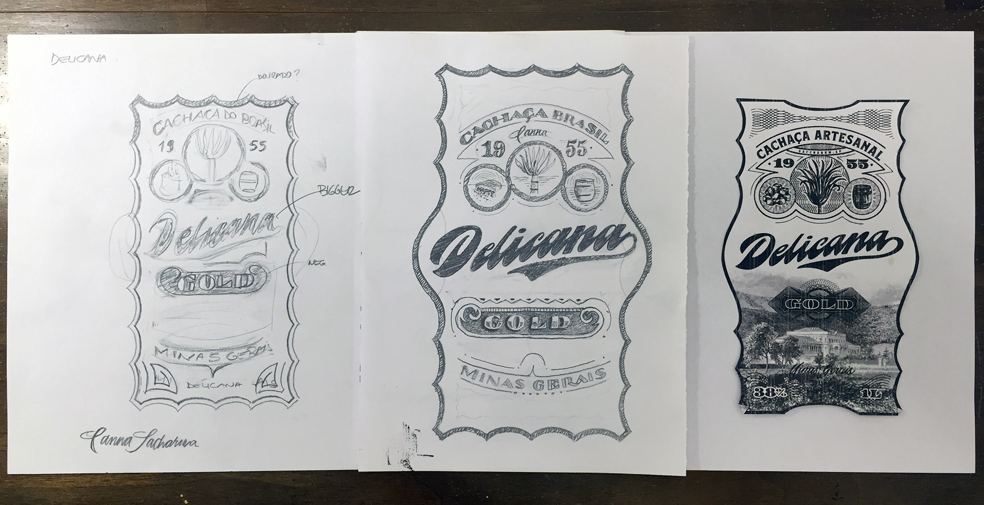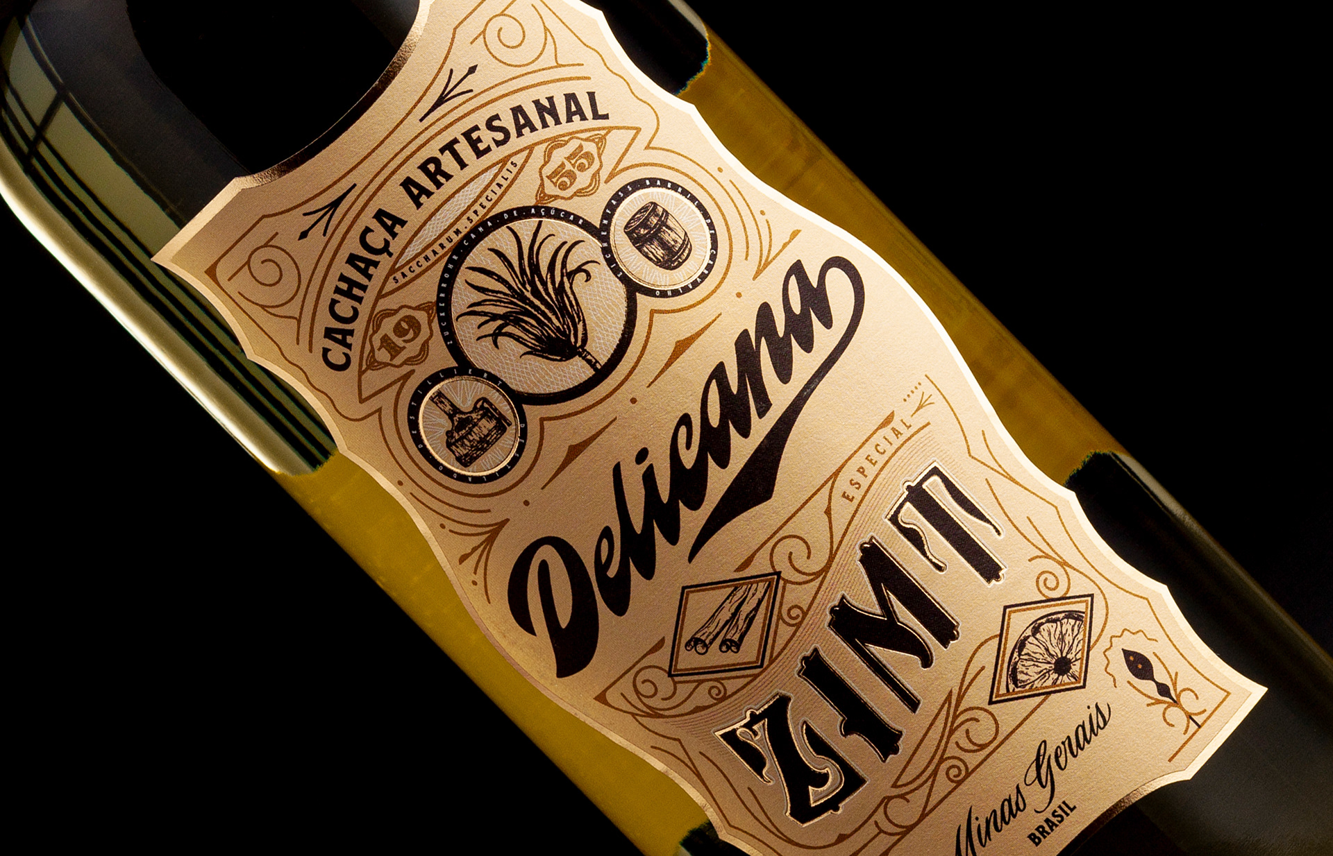 Projeto de redesenho de marca e rótulos da Cachaça Delicana, uma cachaça destilada na Alemanha com matéria prima de Minas Gerais