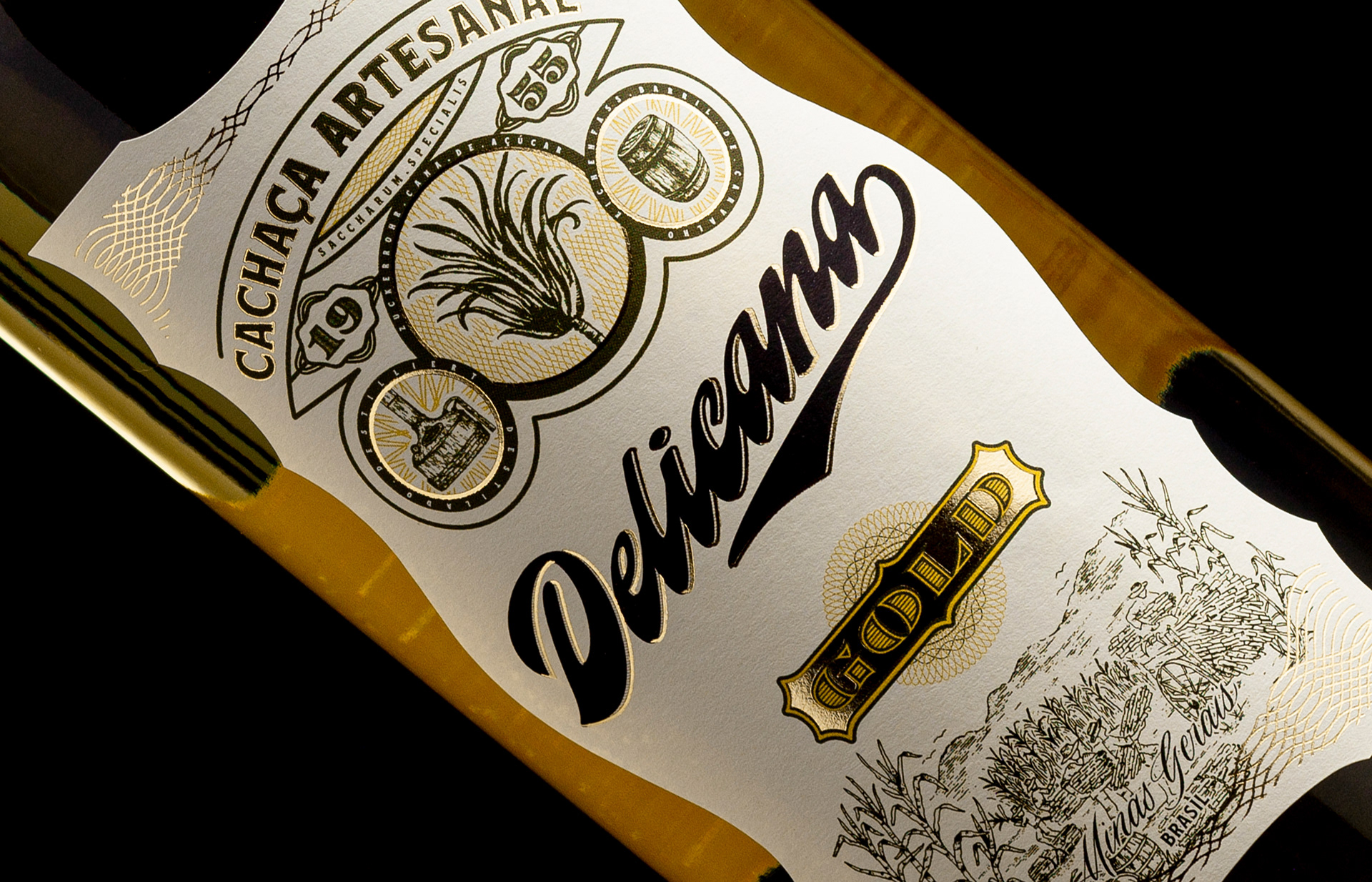 Brand and label redesign for Delicana Cachaça, a spirit distilled in Germany using raw materials from Minas Gerais, Brazil.