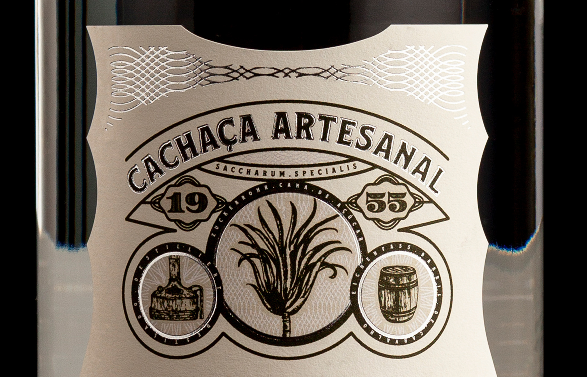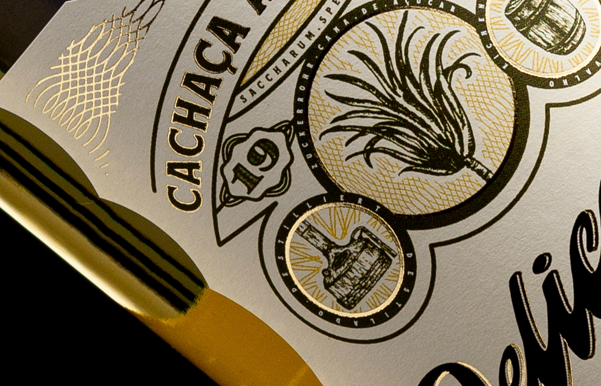 The design concept highlights its three core production elements as medal symbols — sugarcane, the copper pot still and the aging barrel — reinforcing its award-winning quality and authentic Brazilian heritage.