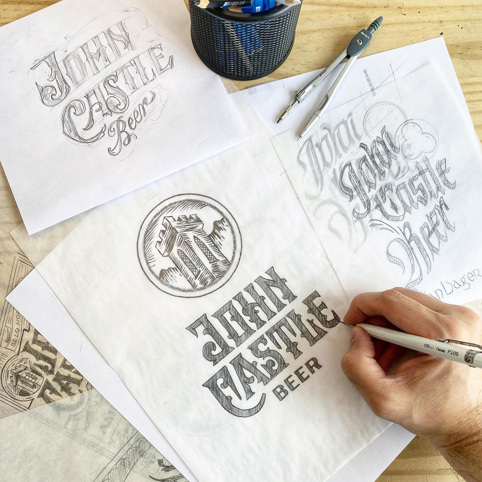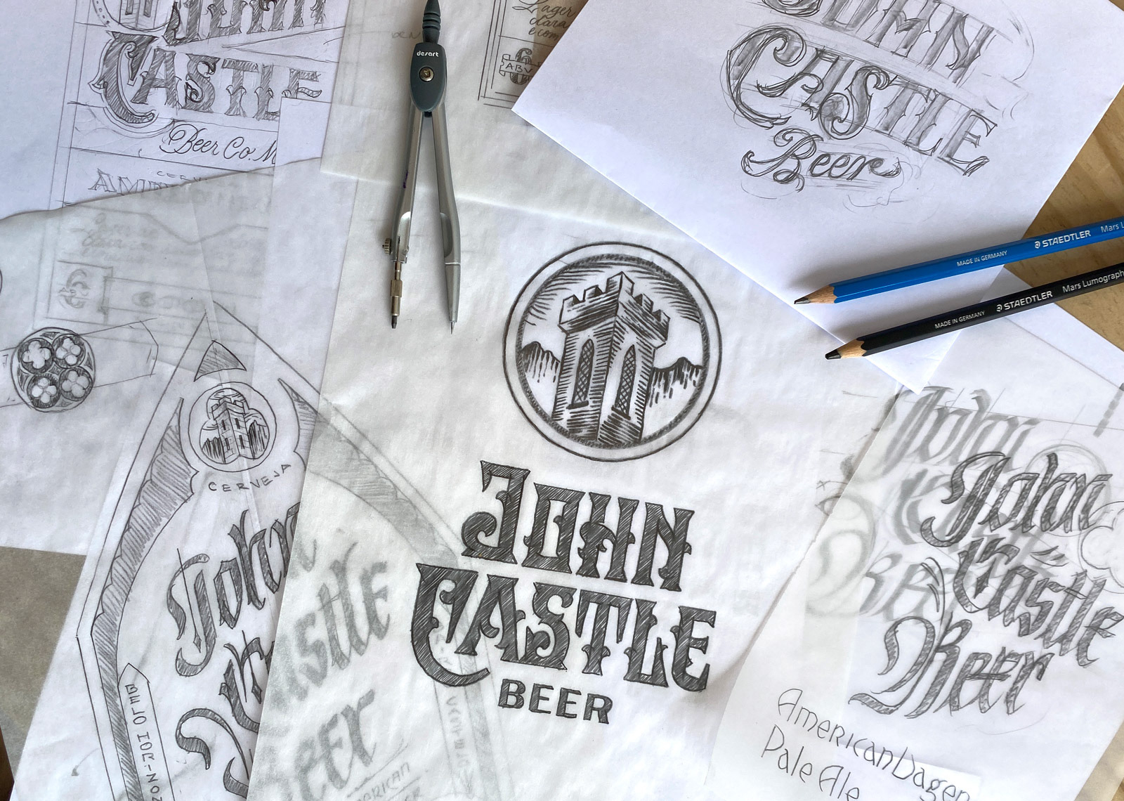 The Brand project was developed with handlettering inspired by the concept of the localization, that is neighborhood called Castelo (that means Castle in Portuguese) along with a tribute to the father of the owner named João (John)