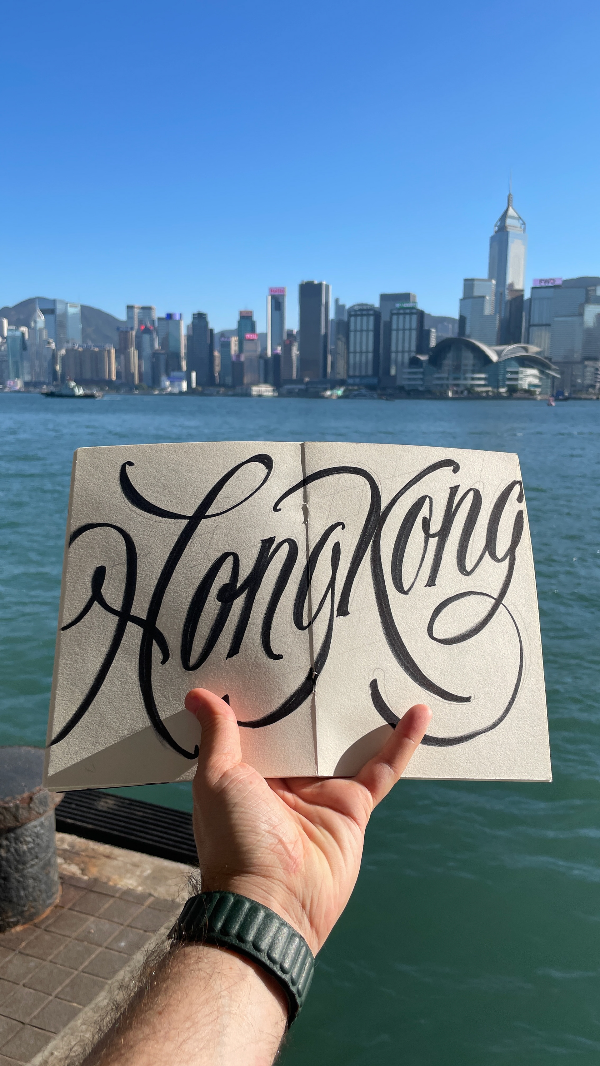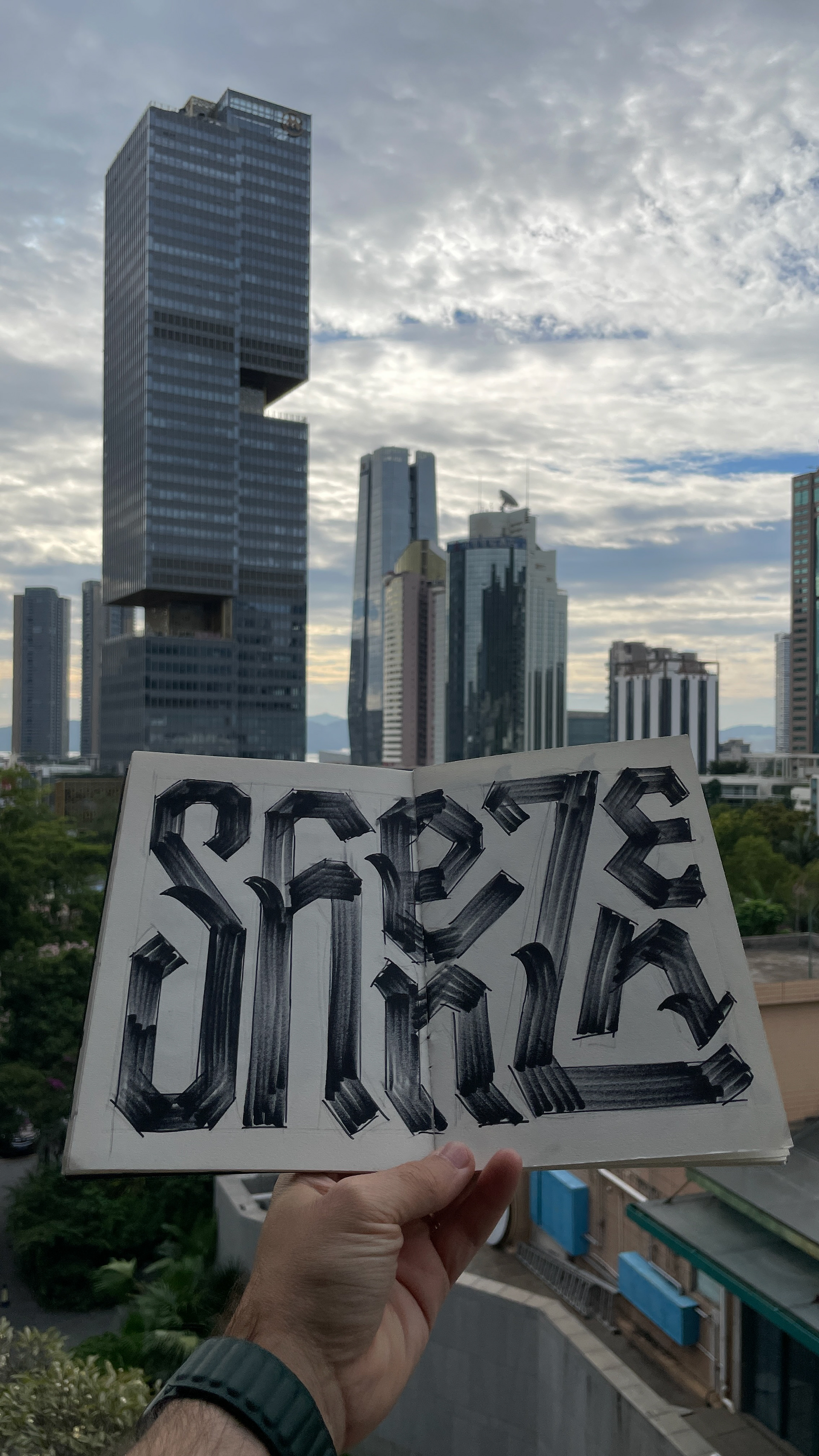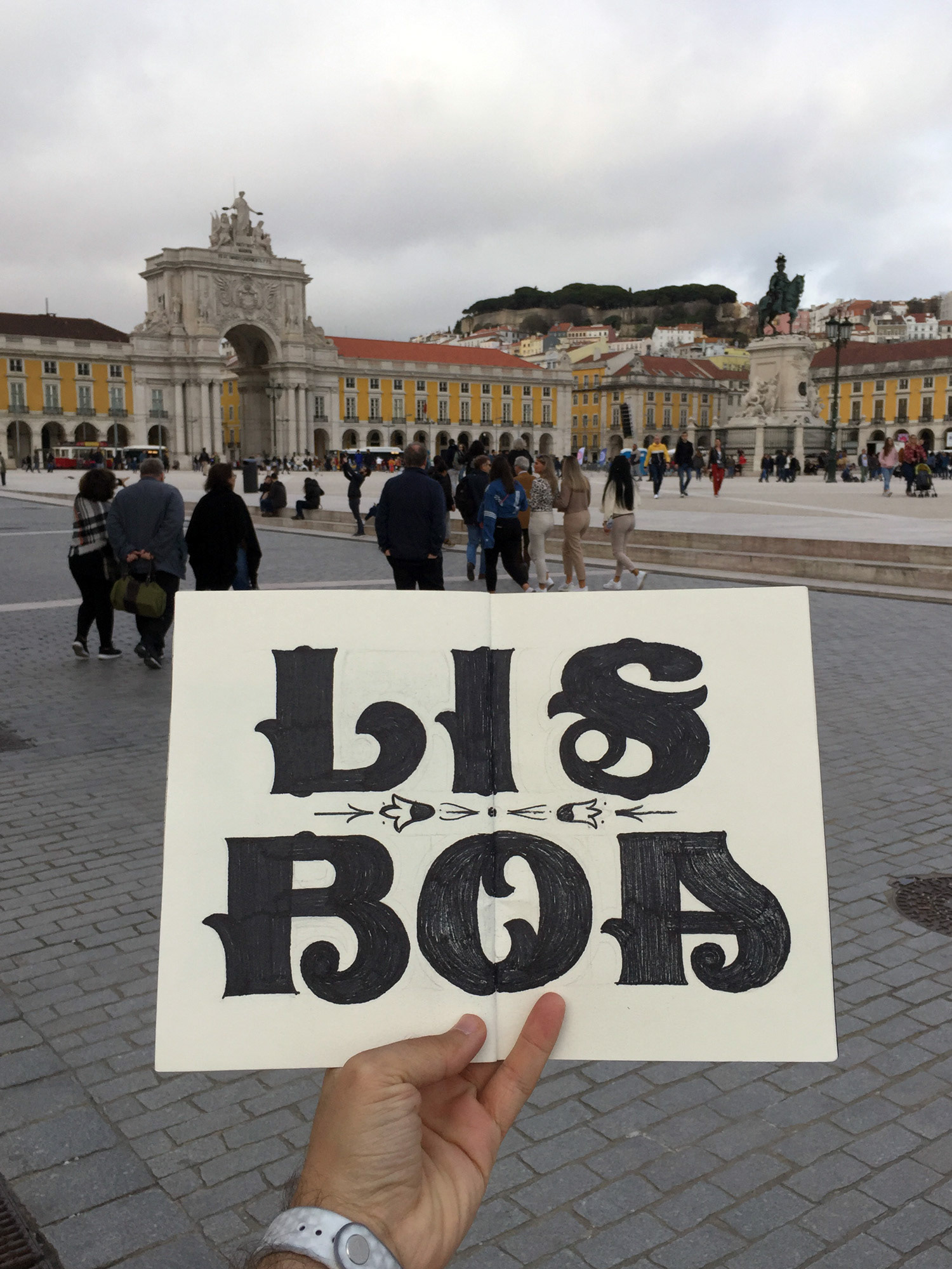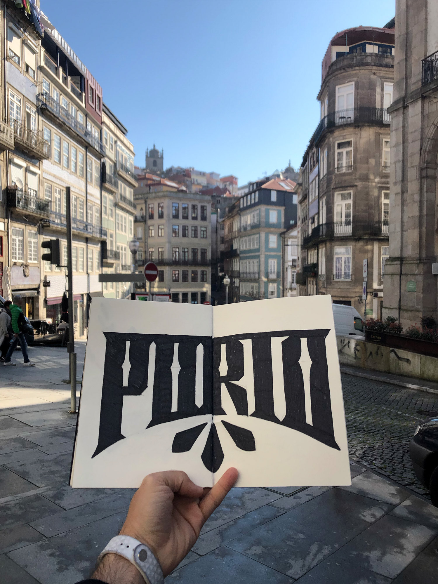 Levo sempre comigo um sketchbook e desenvolvo um lettering para cada cidade que visito. Uma forma de absorver e traduzir visualmente a atmosfera, a cultura e os detalhes locais por meio de ornamentos e estilos tipográficos.