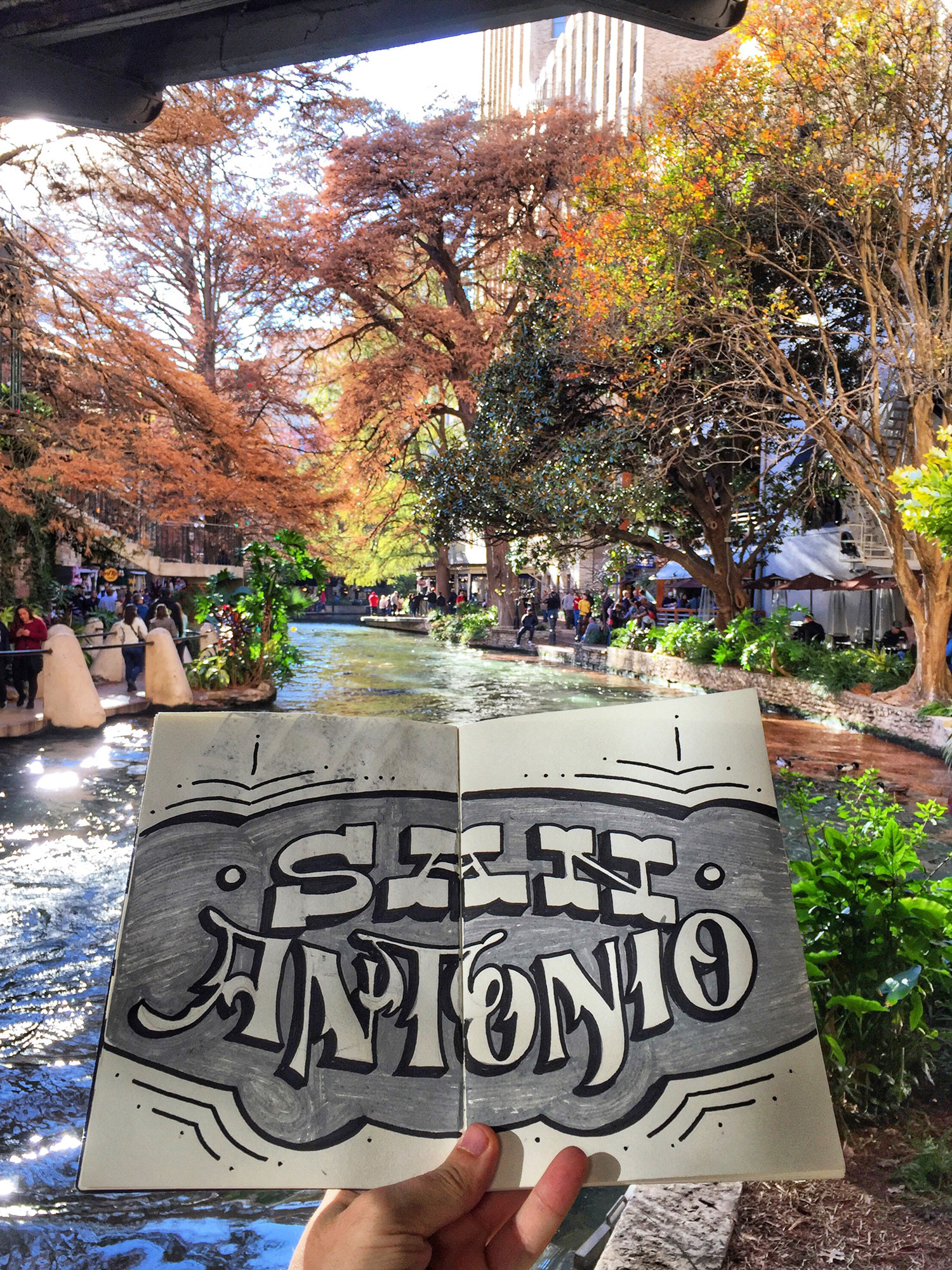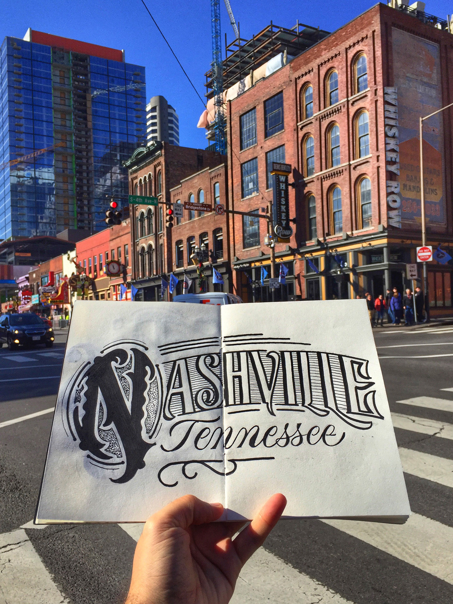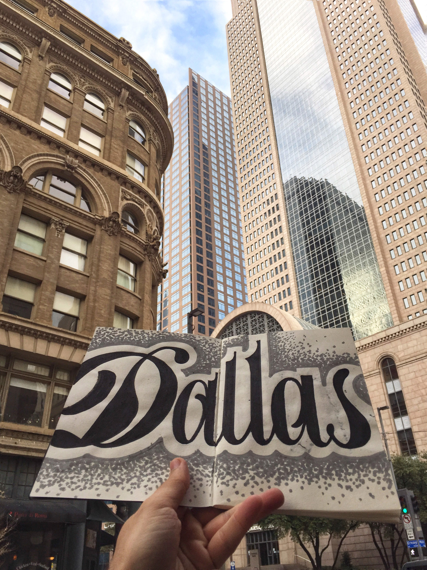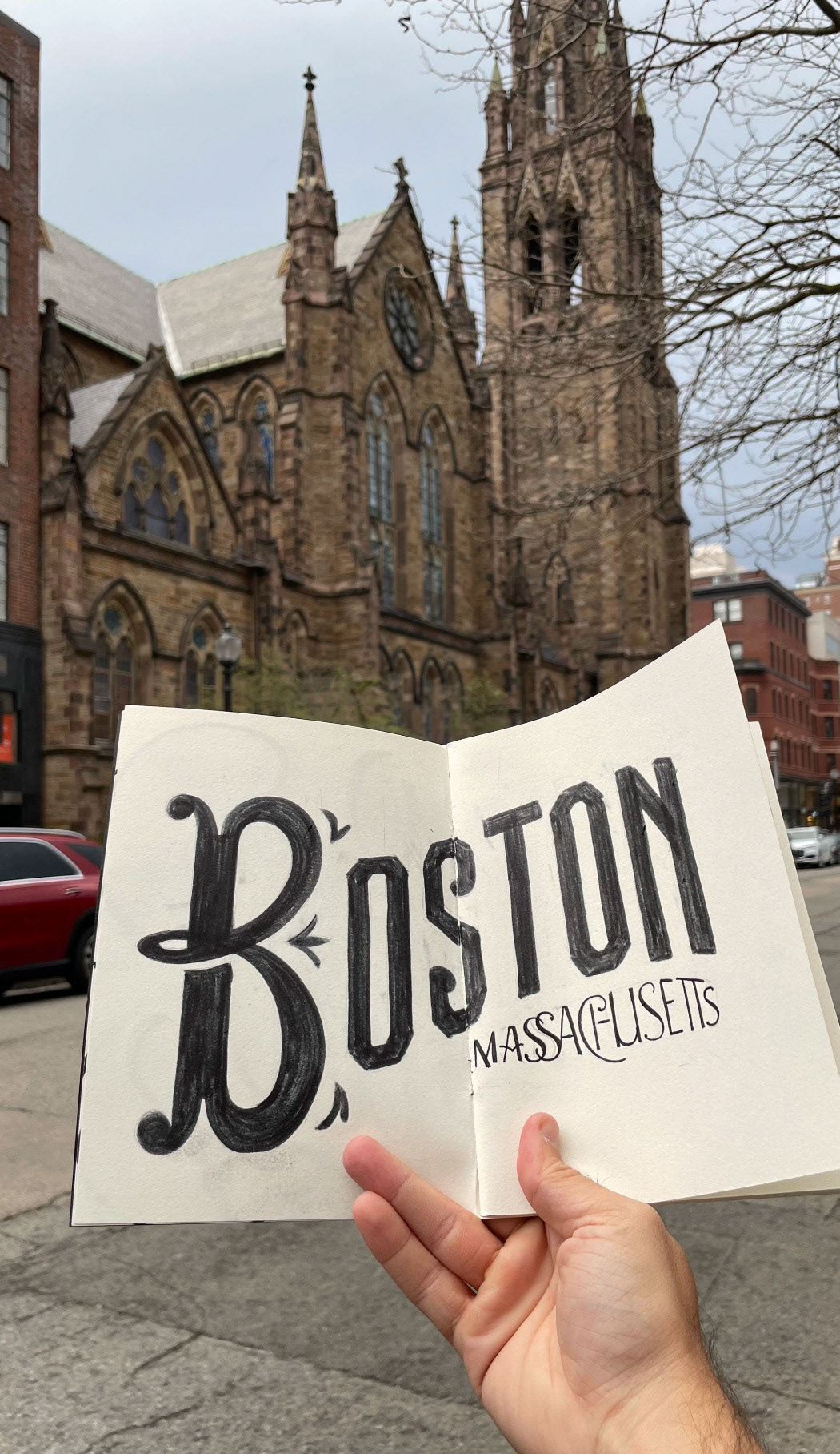 Levo sempre comigo um sketchbook e desenvolvo um lettering para cada cidade que visito. Uma forma de absorver e traduzir visualmente a atmosfera, a cultura e os detalhes locais por meio de ornamentos e estilos tipográficos.
